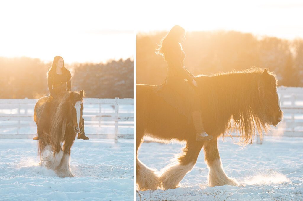 Winter has its own unique magic of fresh snowfall, crisp air, and wonderfully golden light. Sessions in the snow become more than “just photos”; they’re calm, artistic, and deeply emotional, which is perfect for those who want timeless equine artwork that captures the true bond between horse and human.